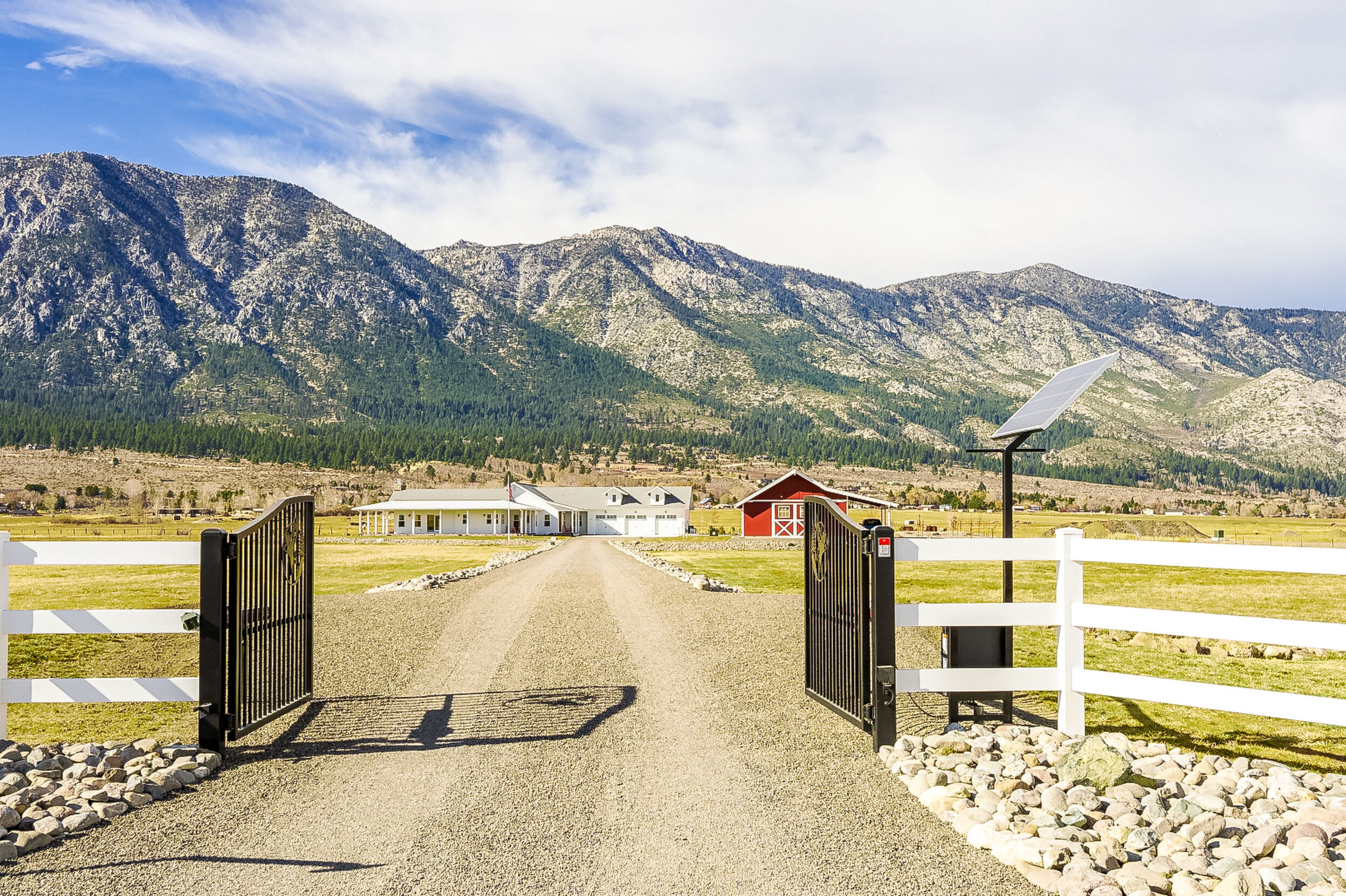 Discover a true gem! This property showcases pride of ownership, evident in every detail. Meticulously maintained, it feels almost like a model home. Enter through the electric gate to breathtaking views of the Eastern Sierra, set on a sprawling 20 acres with stunning vistas all around. Experience rural living at its finest in this exquisite residence featuring four spacious bedrooms, three and a half luxurious bathrooms, and an office or den adorned with custom antique sliding barn doors. The chef's kitchen is a dream come true, featuring custom cabinetry, a commercial-grade range and hood, and Energy Star appliances-perfect for memorable family gatherings. Solid-core doors enhance the overall quality. The laundry room even includes a pet wash station! The three-car garage boasts epoxy flooring for added durability. Step outside to an expansive deck complete with a built-in barbecue, fire pit, and fireplace, with wiring already in place for outdoor heaters-ideal for year-round entertaining. This land truly has it all! Zoned as an agricultural parcel, it comes complete with water rights for irrigating pastures, two serene seasonal ponds, and a year-round creek. It's fully fenced and cross-fenced, with an underground propane tank, private well, and oversized septic system. Beautiful landscaping, enhanced by an automatic sprinkler system, adds to the allure. The barn-style workshop is both insulated and drywalled, as well as the prominent shed adjacent to the well-built chicken coop. Enjoy superior soundproofing throughout the home, along with a whole-home water filtration system and a circulating hot water system. A backup generator ensures peace of mind, while the insulated garage and doors add an extra layer of comfort and convenience. Whether you have horses or toys, there's ample space to expand or customize further. Just minutes from Lake Tahoe, as well as hiking trails and world-class ski resorts at Heavenly, Kirkwood, and Palisades. Conveniently located about 45 minutes from Reno Tahoe International Airport and just 20 minutes from Carson City. Don't miss out on this incredible opportunity!