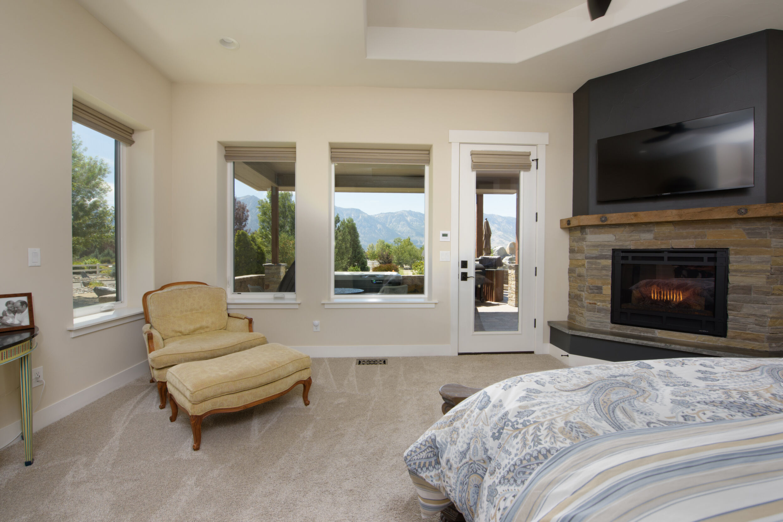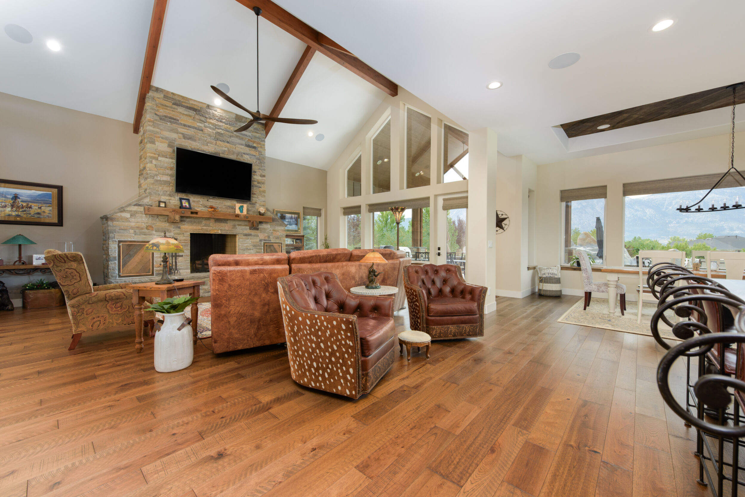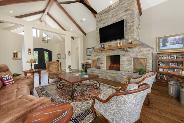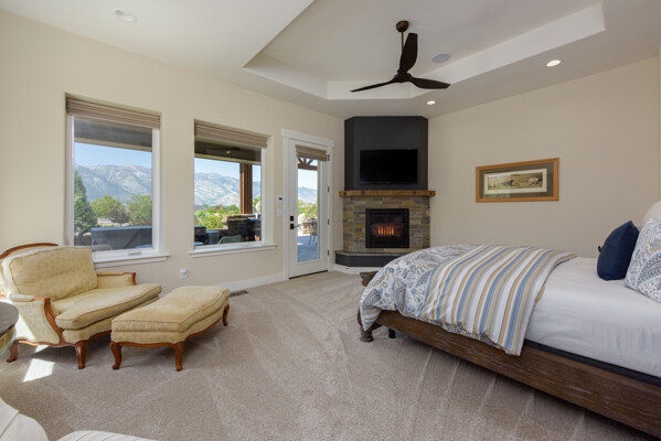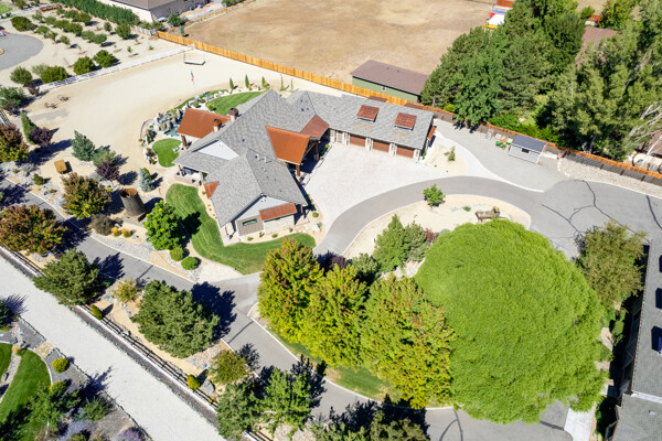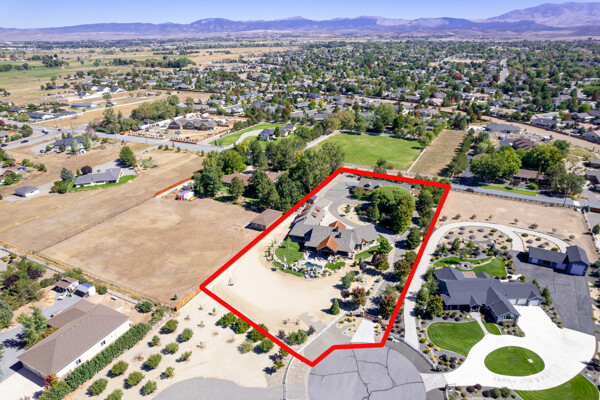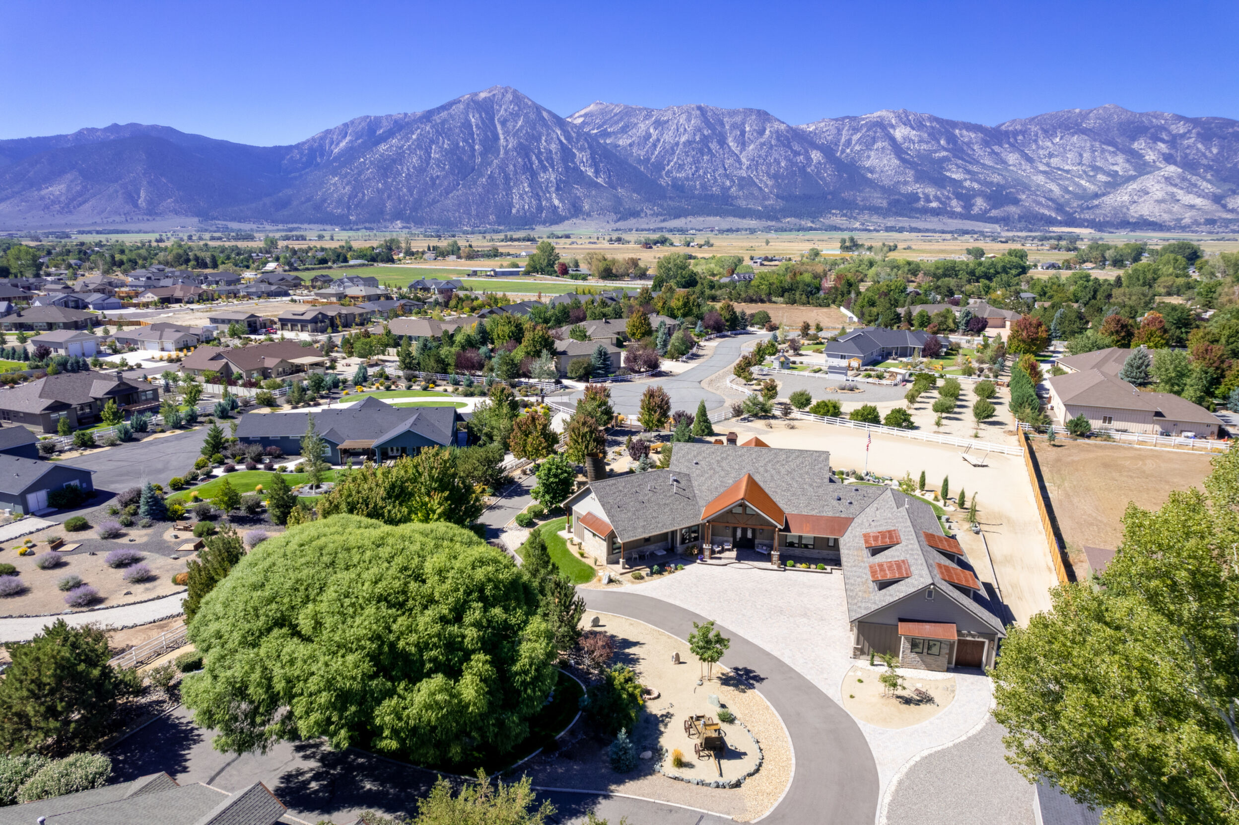A rare opportunity to own an estate where breathtaking mountain views and timeless craftsmanship converge. Designed for refined living and effortless entertaining, this property showcases luxury finishes, thoughtful details, and modern efficiency across the 5,158 sq. ft. main residence (2020) and 1,033 sq. ft. guest house with RV garage (2002). Enter through private gates and arrive in timeless elegance, where handcrafted Bevolo copper gas lanterns illuminate the entry. Beyond the grand double iron doors, a soaring 18' vaulted great room is crowned by a dramatic wall of windows framing sweeping mountain views. Rich reclaimed wood accents infuse warmth in the great room, kitchen, and dining areas, while a massive floor-to-ceiling stone fireplace anchors the space. The main home offers 4 bedrooms, 3.5 bathrooms, a private office, wine room, a spacious bonus room above the garage, and an oversized 1,562 sq. ft. 3-car garage with epoxy floors. Thoughtfully designed, the home offers a primary suite, a secondary ensuite, and two additional bedrooms connected by a beautifully appointed Jack and Jill bath--providing both comfort and flexibility for family and guests. Every bedroom opens to its own private covered patio, extending indoor-outdoor living. High-end details include 10' ceilings, 8' knotty alder doors, a private jacuzzi off the primary suite, and custom blinds throughout-including automation in select rooms. The chef's kitchen centers around a remarkable 9' x 5' island with prep sink, complemented by a professional-grade 6-burner + griddle double oven range, warming drawer, built-in microwave, dual dishwashers, 42" refrigerator, wine/beverage fridge, pantry refrigerator, trash compactor and a discreet under-cabinet vacuum system-designed for both everyday living and effortless entertaining. A highlight of the estate, the private 585-bottle wine room offers a naturally climate-controlled environment. Subtle lighting highlights handcrafted Australian Red Iron Bark shelving, wall decor, and a striking floating spiral staircase-an artistic centerpiece that transforms the wine room into both a collector's haven and a showpiece. This home is built for efficiency and comfort with ICF construction, dual HVAC systems, a house humidifier, 22kW generator, 220 power in garage, central vacuum (including garage), copper exterior fixtures, and landscape lighting. Oversized garage doors provide ease of access, while even pets are cared for with a dedicated dog wash and dryer station. The guest house offers 1 bedroom, 2 bathrooms, a full kitchen, living room, laundry area, and a separate garage-ideal for extended family, guests, or private quarters. Nestled among fruit trees with a charming picket-fenced yard and patio, it has been recently updated with new windows, exterior doors, and garage doors (2020), along with a stainless-steel stove/oven and microwave. The attached climate-controlled RV garage features epoxy floors, dual 220 power, RV sewage dump, floor drains, and abundant storage so toys never need winterizing. A separate garage, 14x18 shed with garden prep and cabinets, dog run, and extra parking add further convenience. Outdoor spaces are designed for relaxation and entertainment, with a two-sided water feature, expansive patios, built-in gas BBQ, and fire pit. Surround sound extends throughout the home, garage, and back patio. Apple, cherry, nectarine, plum, and peach trees enhance the fully fenced grounds with automatic entry gates and small-animal fencing. Adding historic charm, the estate is graced by the iconic 1862 Walley's Hot Springs water tower, blending modern luxury with the valley's storied past. The Heavenly View Estate is more than a home-it is a lifestyle, offering elegance, privacy, and timeless beauty. With too many exceptional features to list, this one-of-a-kind property must be seen to be fully appreciated. All just minutes to Lake Tahoe and Reno Tahoe airport.