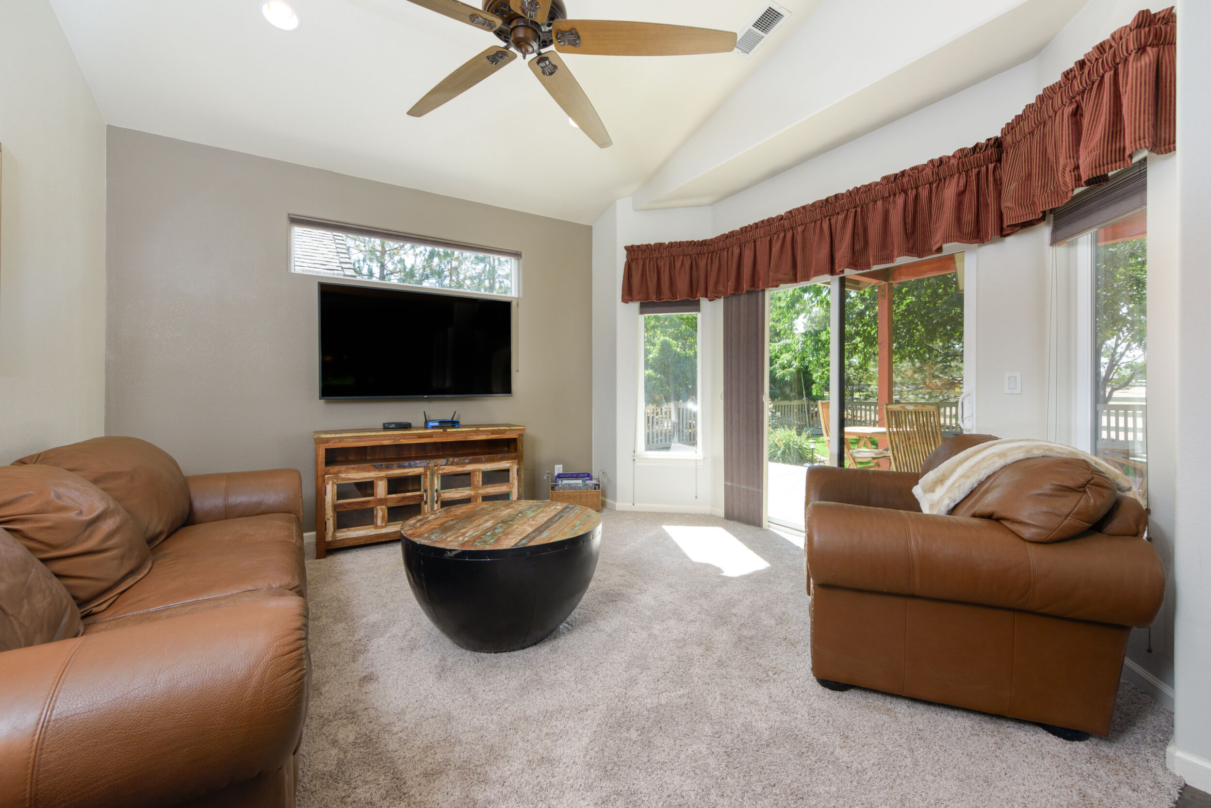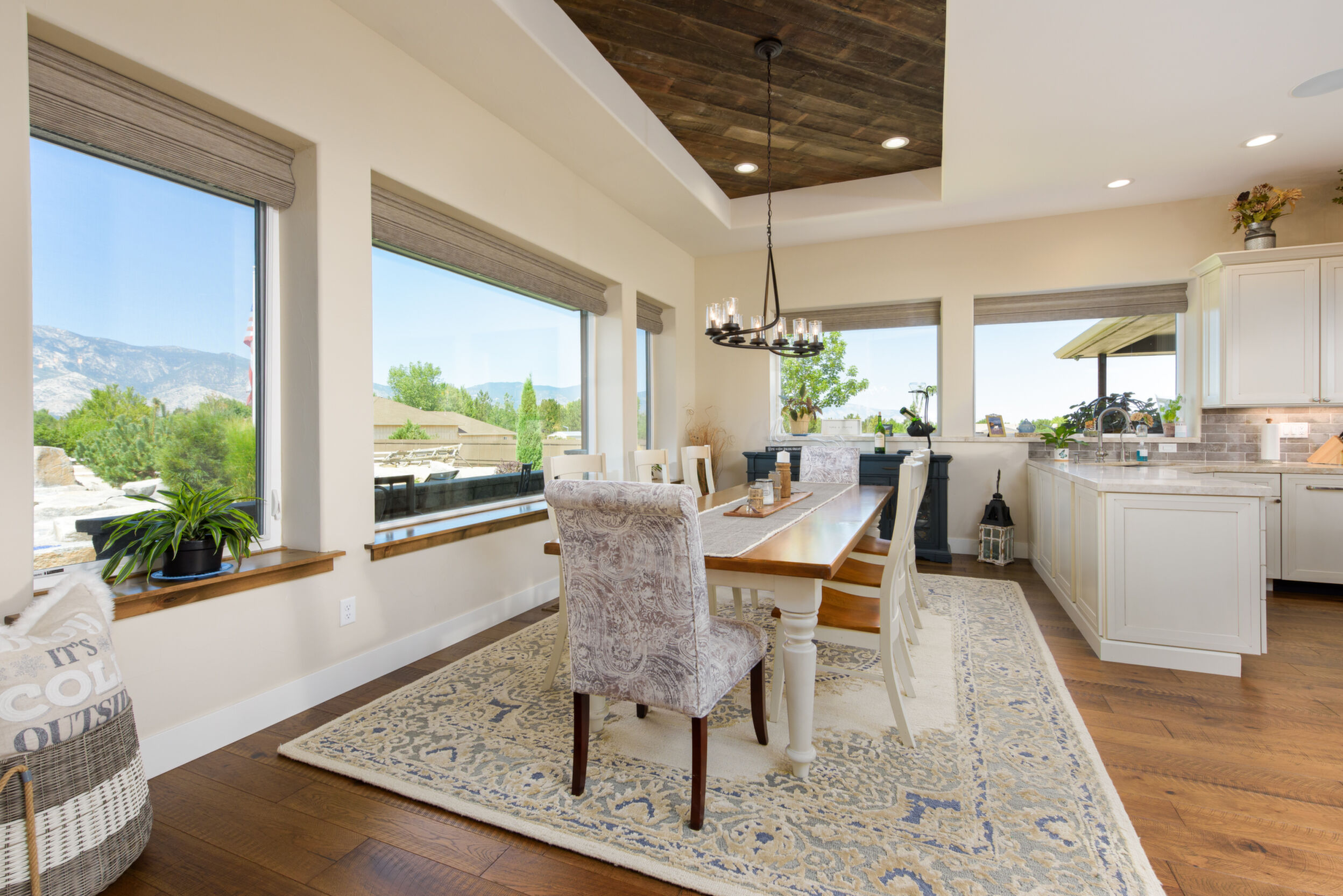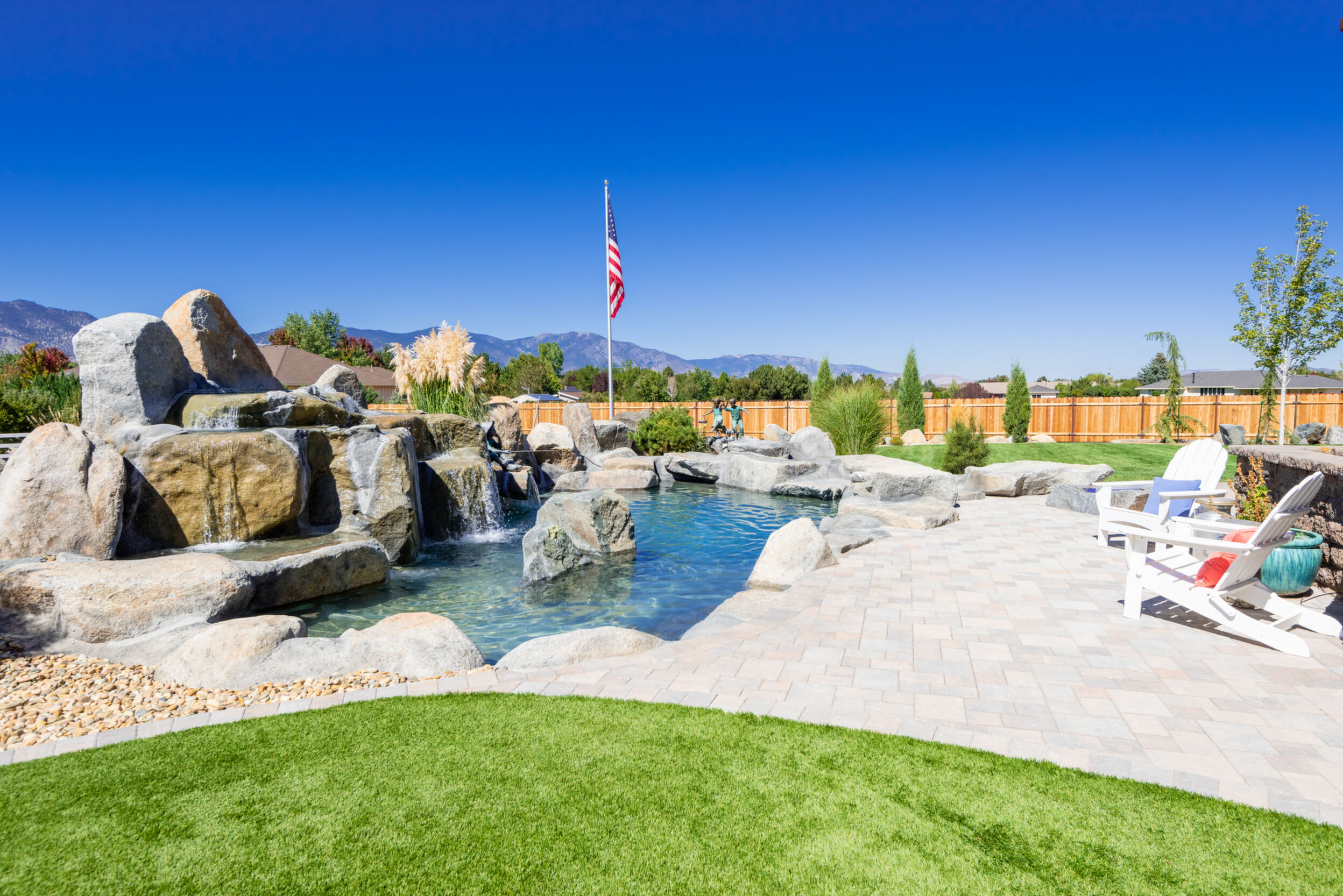 A rare opportunity to own an estate where breathtaking mountain views and timeless craftsmanship converge. Designed for refined living and effortless entertaining, this property showcases luxury finishes, thoughtful details, and modern efficiency across the 5,158 sq. ft. main residence (2020) and 1,033 sq. ft. guest house with RV garage (2002). Enter through private gates and arrive in timeless elegance, where handcrafted Bevolo copper gas lanterns illuminate the entry. Beyond the grand double iron doors, a soaring 18' vaulted great room is crowned by a dramatic wall of windows framing sweeping mountain views. Rich reclaimed wood accents infuse warmth in the great room, kitchen, and dining areas, while a massive floor-to-ceiling stone fireplace anchors the space. The main home offers 4 bedrooms, 3.5 bathrooms, a private office, wine room, a spacious bonus room above the garage, and an oversized 1,562 sq. ft. 3-car garage with epoxy floors. Thoughtfully designed, the home offers a primary suite, a secondary ensuite, and two additional bedrooms connected by a beautifully appointed Jack and Jill bath--providing both comfort and flexibility for family and guests. Every bedroom opens to its own private covered patio, extending indoor-outdoor living. High-end details include 10' ceilings, 8' knotty alder doors, a private jacuzzi off the primary suite, and custom blinds throughout-including automation in select rooms. The chef's kitchen centers around a remarkable 9' x 5' island with prep sink, complemented by a professional-grade 6-burner + griddle double oven range, warming drawer, built-in microwave, dual dishwashers, 42" refrigerator, wine/beverage fridge, pantry refrigerator, trash compactor and a discreet under-cabinet vacuum system-designed for both everyday living and effortless entertaining. A highlight of the estate, the private 585-bottle wine room offers a naturally climate-controlled environment. Subtle lighting highlights handcrafted Australian Red Iron Bark shelving, wall decor, and a striking floating spiral staircase-an artistic centerpiece that transforms the wine room into both a collector's haven and a showpiece. This home is built for efficiency and comfort with ICF construction, dual HVAC systems, a house humidifier, 22kW generator, 220 power in garage, central vacuum (including garage), copper exterior fixtures, and landscape lighting. Oversized garage doors provide ease of access, while even pets are cared for with a dedicated dog wash and dryer station. The guest house offers 1 bedroom, 2 bathrooms, a full kitchen, living room, laundry area, and a separate garage-ideal for extended family, guests, or private quarters. Nestled among fruit trees with a charming picket-fenced yard and patio, it has been recently updated with new windows, exterior doors, and garage doors (2020), along with a stainless-steel stove/oven and microwave. The attached climate-controlled RV garage features epoxy floors, dual 220 power, RV sewage dump, floor drains, and abundant storage so toys never need winterizing. A separate garage, 14x18 shed with garden prep and cabinets, dog run, and extra parking add further convenience. Outdoor spaces are designed for relaxation and entertainment, with a two-sided water feature, expansive patios, built-in gas BBQ, and fire pit. Surround sound extends throughout the home, garage, and back patio. Apple, cherry, nectarine, plum, and peach trees enhance the fully fenced grounds with automatic entry gates and small-animal fencing. Adding historic charm, the estate is graced by the iconic 1862 Walley's Hot Springs water tower, blending modern luxury with the valley's storied past. The Heavenly View Estate is more than a home-it is a lifestyle, offering elegance, privacy, and timeless beauty. With too many exceptional features to list, this one-of-a-kind property must be seen to be fully appreciated. All just minutes to Lake Tahoe and Reno Tahoe airport.